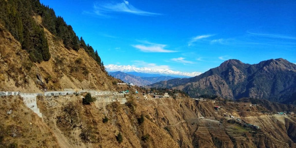 On a bright sunny day one can observe majestic view of the snow covered Himalayas, if one follows the road from Woodstock school towards Dhanaulty,