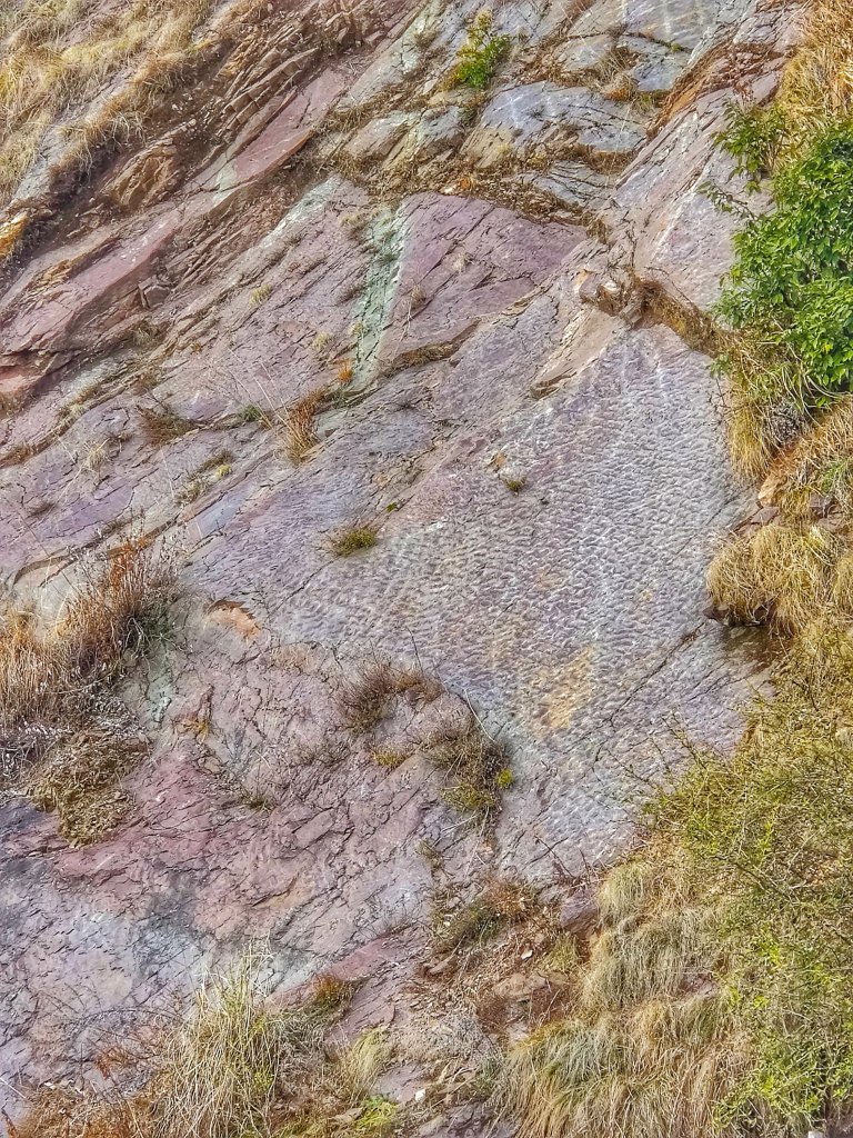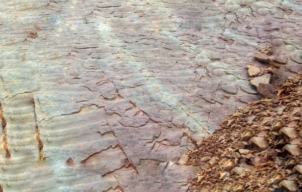 About 7 kilometres ahead of Woodstock school near Kaplani, there lies inclined bedding planes which are dipped in southwest angle. The bedding planes are made out of red sandstone. The beds display ferrous leaching. Joints and fracture also can be clearly seen. The sedimentary structure shows unique Ripple marks. The ripple marks are mostly present in the Sandstones, which are mostly ferruginous in content. The ripple marks at this site show different current directions.