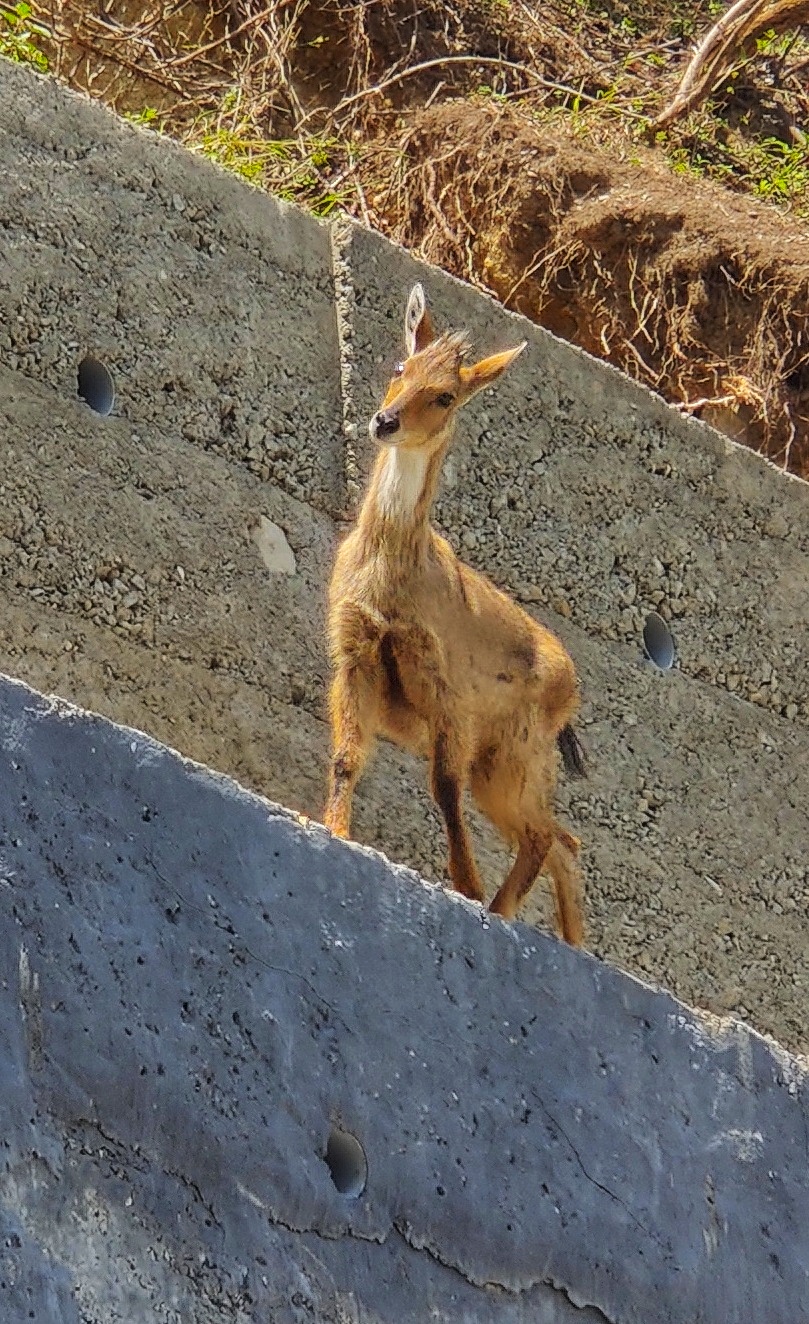 No sooner the vehicle started an adult Himalayan Goral came galloping from the rocky mountain slope onto the road, in front of the vehicle and hurriedly made its way across the other side. I was startled at the rare sighting of the Himalayan Goral in this busy part of the mountain bypass road. But to my astonishment, I could see another Himalayan Goral waiting patiently to cross the road. The vehicle engine stopped and I could see the Goral from a very close proximity.