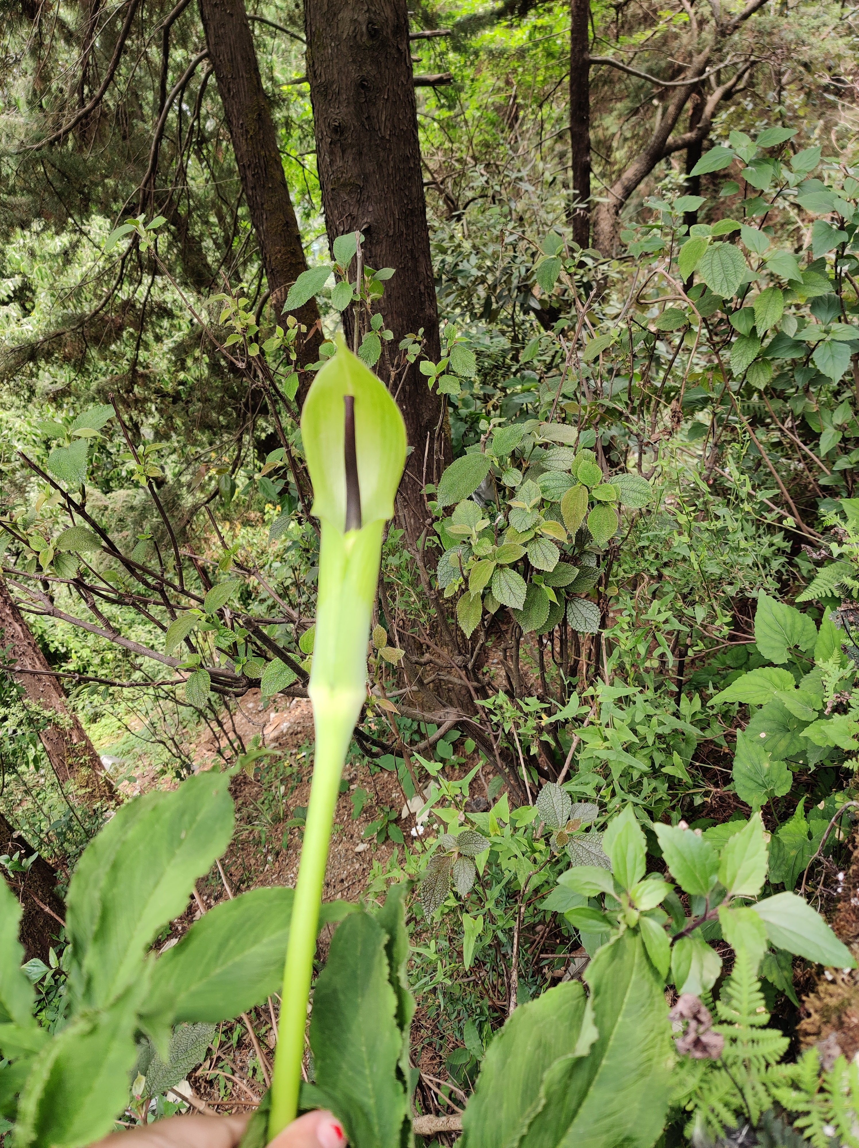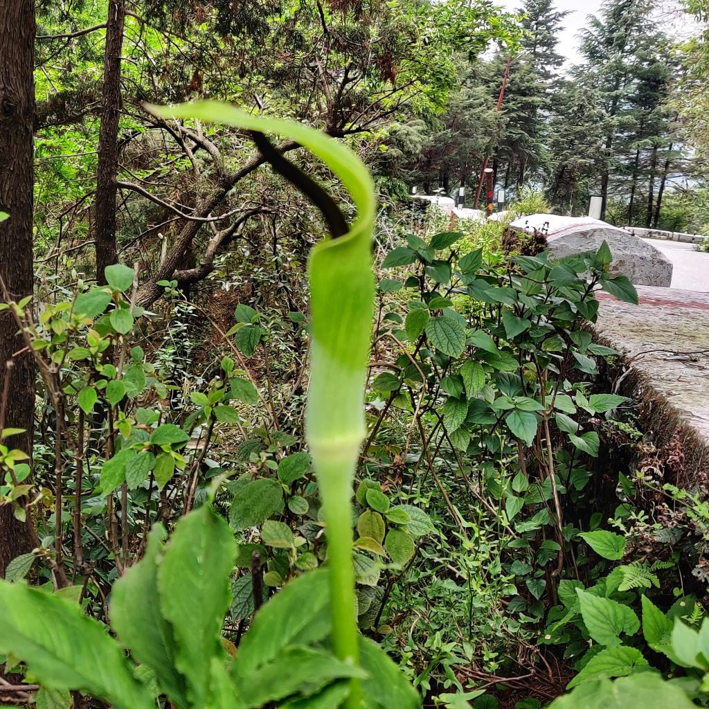 Cobra Lily (Arisaema tortuosum var. tortuosum) or Whipcord Cobra Lily also known as Jack in the pulpit is native to open Rhododendron forests, scrub and alpine meadows in the Himalaya from India to western China to southern India and Myanmar (Burma). It often grows as weed in the green understory along the hillslopes and tracts.
