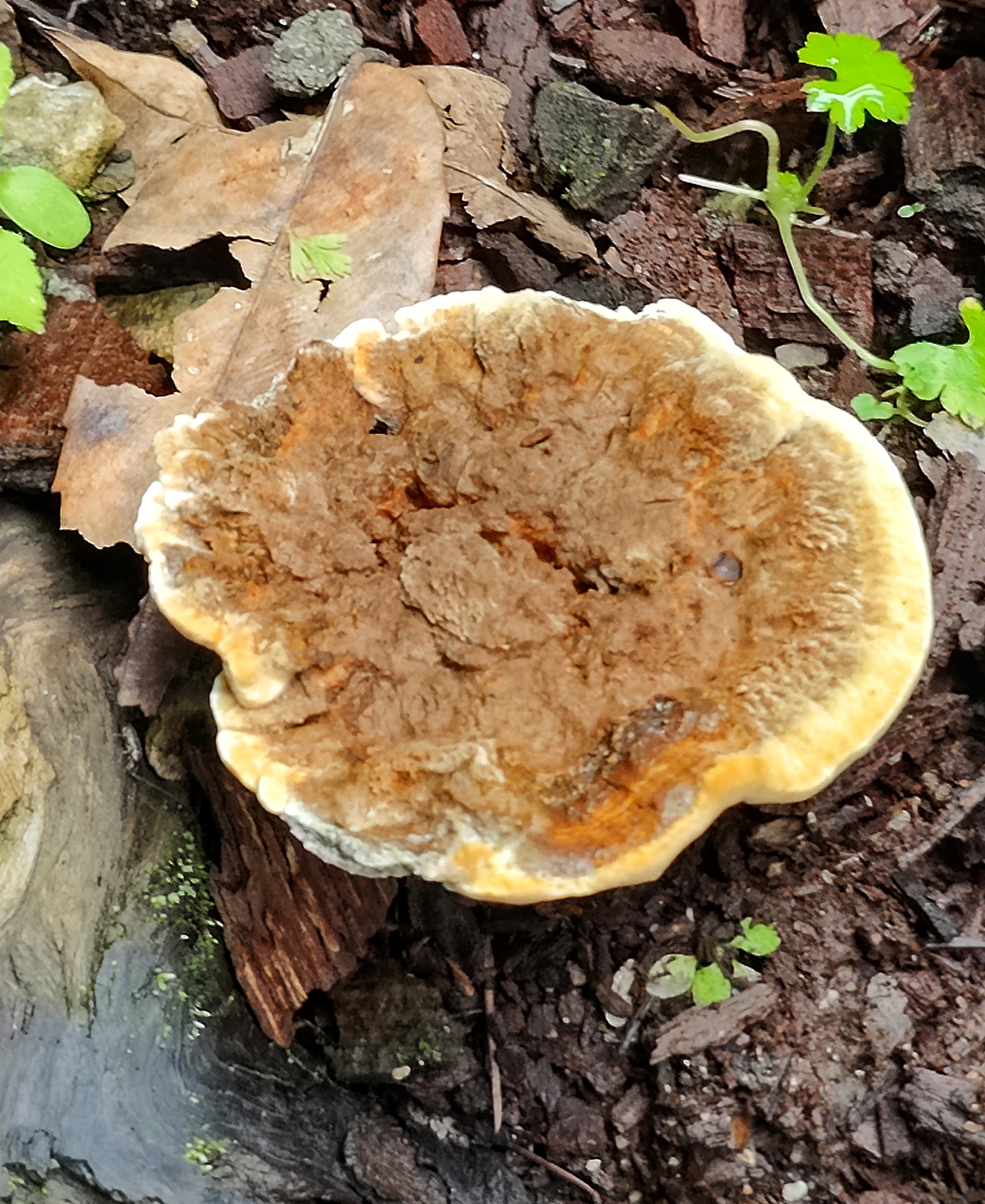 Children came across this mushroom, which bloomed out of an old tree stump. It seems like a Polyporus mushroom to me. But looking at its appearance, I really don’t want to check whether it is edible or not.