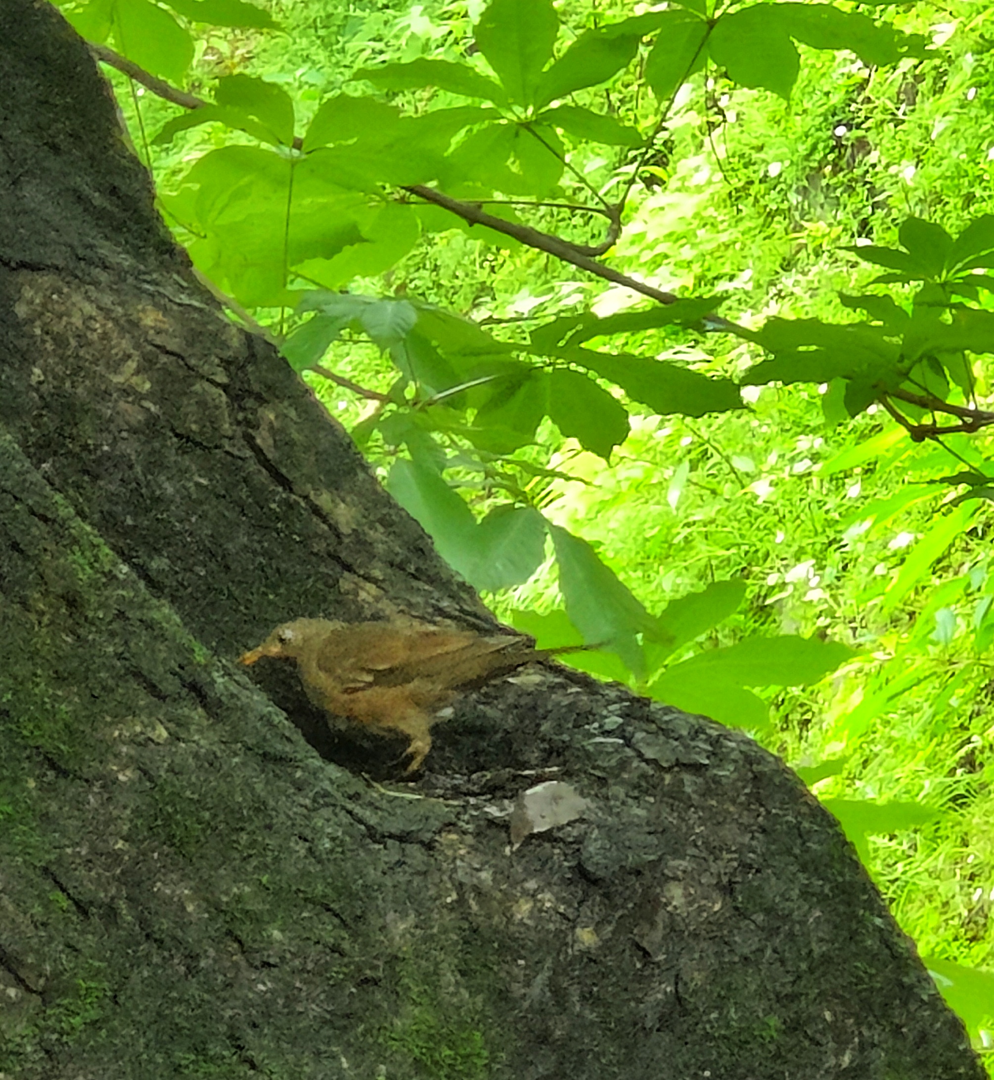 A couple of Gray winged Blackbird are also on the lookout for food on the forest floor beneath the Horse Chestnut tree. How diligently it turns over each leaf litter and twigs to search insects. It seems that they might have made a nest somewhere nearby. The male Gray blackbird was eager and alert to protect its territory. The female gently made poise. We respected their territory and stepped back.