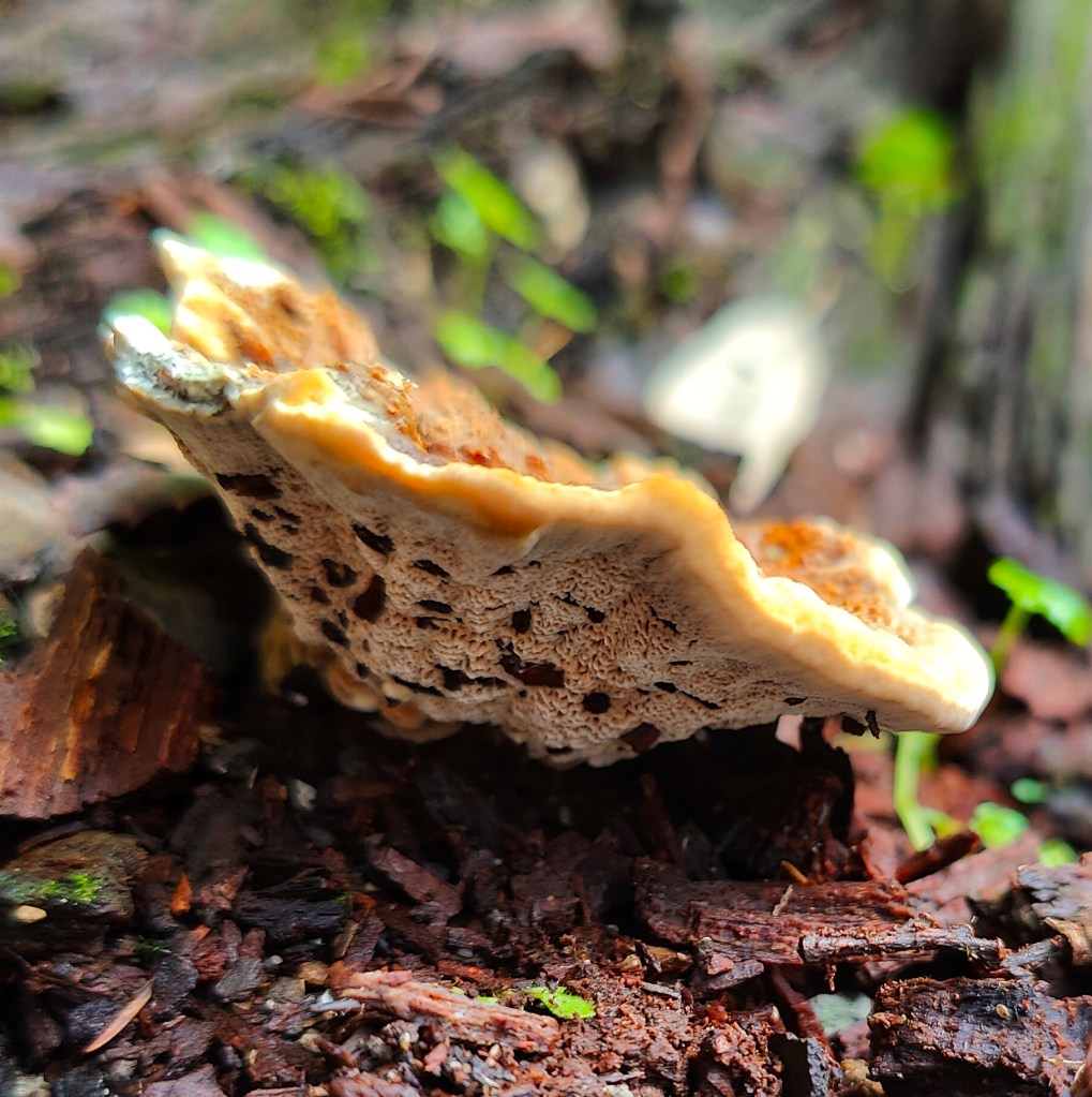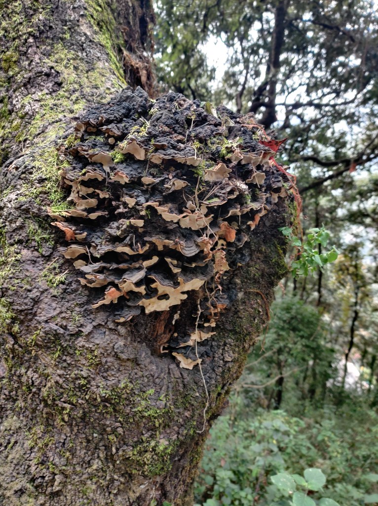 Found this infected Polyporus mushroom growing out rotten tree stump of Chir Pine tree.