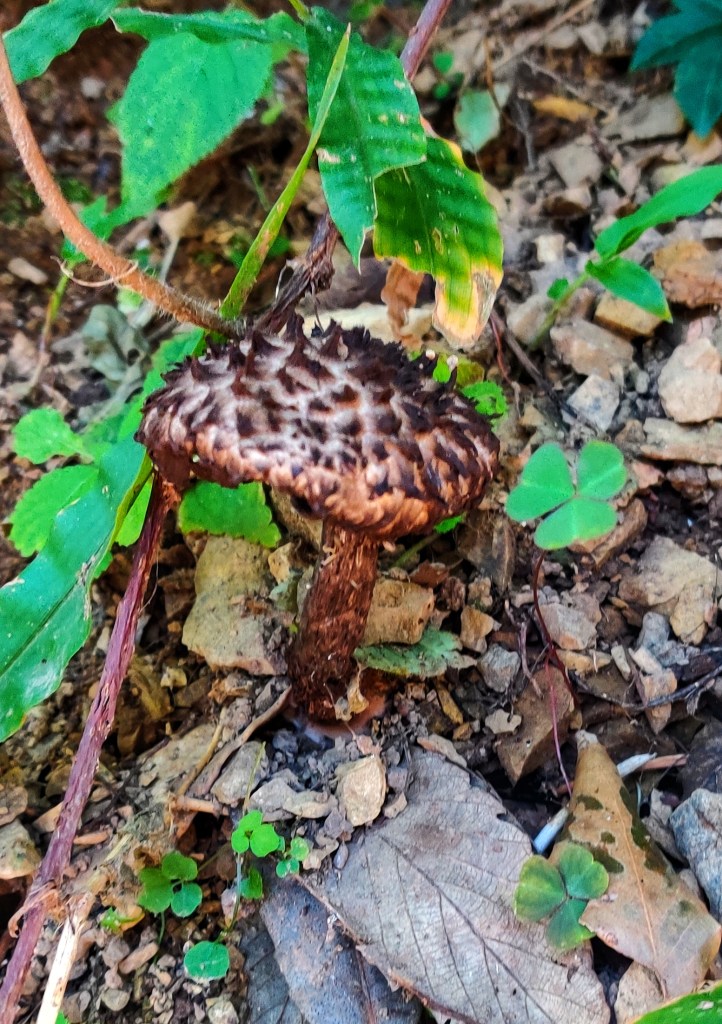 The following mushroom is also known as Old man of the woods. One can easily spot this mushroom due to its typing form. The old man of the woods (Strobilomyces sp.) is a decent edible mushroom with a very striking appearance that makes it difficult to forget or mistake. I came across this mushroom for the first time naturally growing on the Oak forest floor.