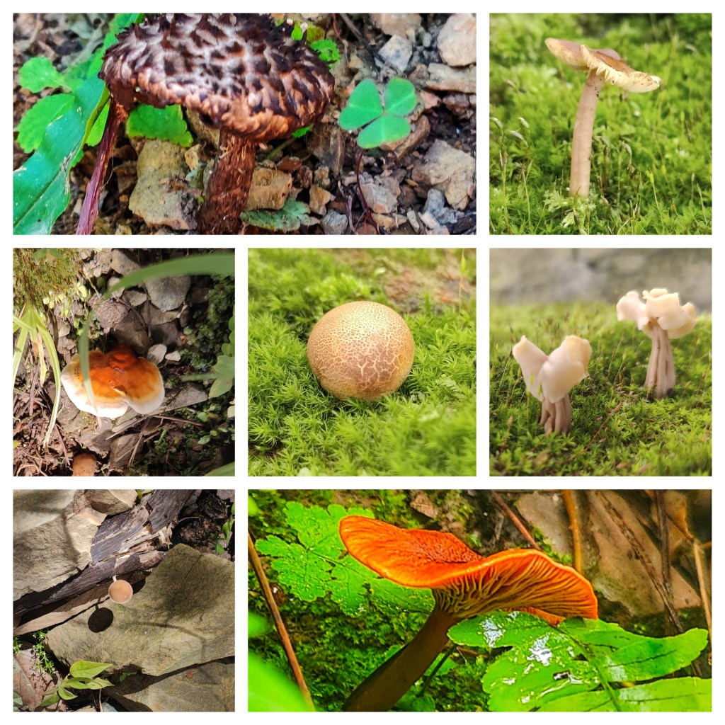 Autumn season has arrived on the hillside of Landour, Mussoorie as the ferns have started to turn yellowish brown. But the forest floor is still under the spell of monsoon magic as diverse mushrooms are still springing up through the forest floors. Everyday I come across these mushrooms of different, shapes, sizes and colours. Some mushrooms are edible, while some are poisonous, few are symbiotic or mycorrhizal too. Some love to grow on the rotten tree stumps, some prefer the rhizosphere of particular tree species only. Few like the rocky crevasses and few pop out from the mosses. It’s fascinating to observe them grow each day. The forests in the hillside consist mainly of Oak, Rhododendrons and intermittent Deodar and Pine. These mushrooms are sometimes mycorrhizal which are also an important component of forest ecology. They form wide networks in the rhizosphere of the forest creating a network for communication. This year the hillside is experiencing extended rainy days which is often an usual seasonal variation. The moisture and the warm humid temperature speeds up the decomposition process which is favorable for the mushrooms to flourish. I tried to capture these mushrooms and also attempted to identify them.
