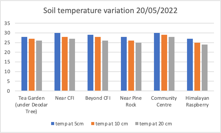 There is ample scope of study of forest soil and preliminary soil temperature study is only one aspect. In an attempt to understand the topic of thermodynamics the students of middle years ventured outdoors to record soil temperatures. The soil temperature is a crucial factor to estimate soil microbial activity, plant as well as soil health also interrelation with various aspects of ecology and environment.