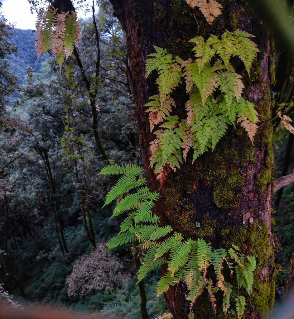 While hiking in the woods today, I came across this big Oak tree. It was fascinating to observe two different species of ferns growing over moss covered bark. They were growing on the same aspect of the tree bole. The ferns were growing alongside each other but they respected each other’s boundaries. This is the season when ferns start turning brown. Yes of course, the winter season has arrived on the hillside of Landour, Mussoorie. The last stretch of ferns growing in the hillside for the year. They will again visit us in the coming year during the summer season.