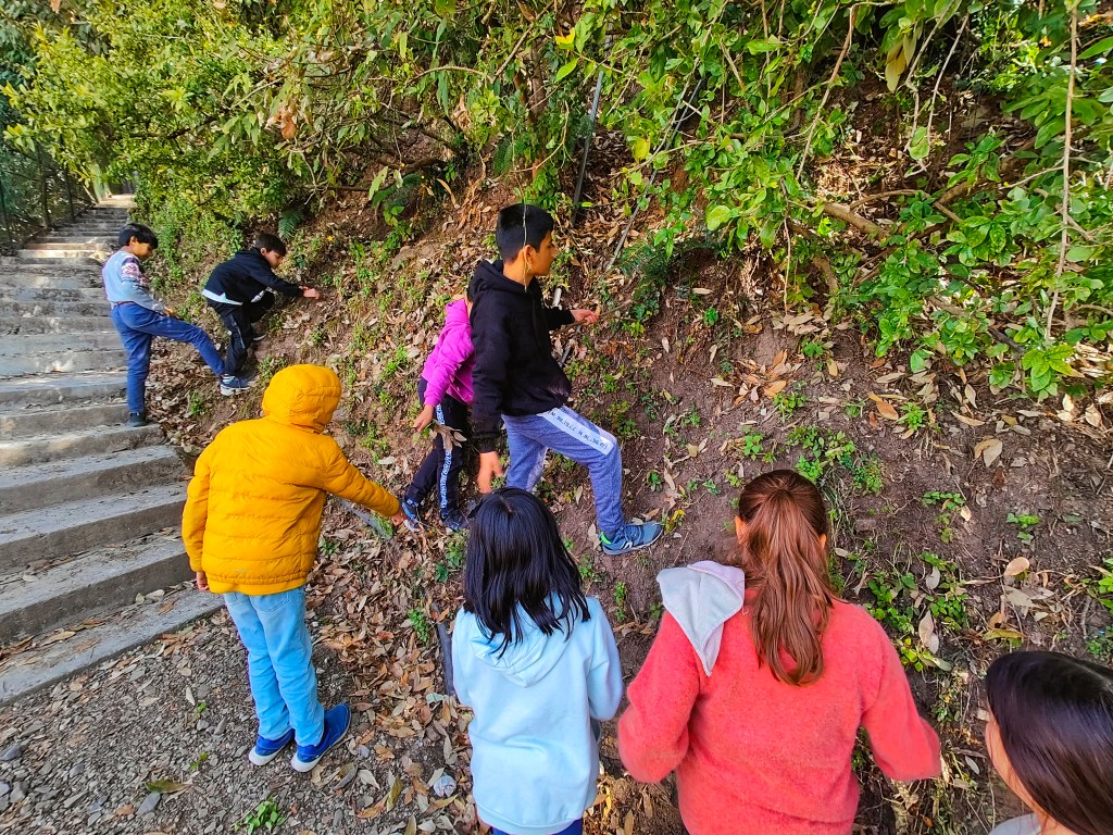 As we entered the trail, the students instantly started observing the effects of season change on the ecosystem. They started sharing their observations about the leaf fall, flowers which mostly bloom, weathering of soil and rocks and many more. While walking on the trail for a few steps, we came across this big Oak tree with an interesting hollow on its trunk. The tree caught our attention and looking at the appearance, I instantly called it a ‘Portal to another world’ , Portal in the trees and the children were very curious about its presence. They started asking various questions for eg. What if the portal actually existed? What would it be like on the other side of the trees etc. I felt somewhere it tickled their inquisitive minds and children had lots of fun discussing the tree.